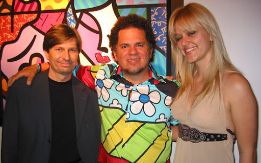 De passagem rápida pelo Brasil, o grande Romero Britto , cujas obras são constantemente utilizadas nos projetos de Aquiles e da designer de interiores Iara Kílaris.Na foto, Aquiles, Romero Britto e Iara .