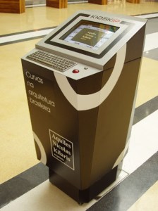 A exposição Curvas na Arquitetura Brasileira, conta agora com o Terminal Interativo Kioskip , onde os visitantes poderão interagir com os projetos e consultar todo o conteúdo disponível do site, de forma bastante dinâmica.