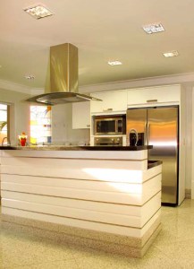 Como a cozinha passou a ser uma das vedetes da casa, se tornou imprescindível todo seu planejamento, desde a concepção dos armários planejados, até a utilização de materiais e equipamentos de vanguarda e de fácil manutenção.