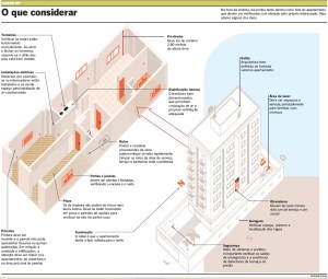 “É comum as pessoas assinarem um documento de aprovação e, somente na hora da mudança, começar a identificar os problemas”, diz. Além do próprio apartamento, o coordenador do curso de Engenharia Civil da Unicsul, Miguel Leon, aconselha observar também a estrutura geral do prédio. “É importante saber se os pilares e as vigas estão mofadas ou apresentam sintomas de corrosão e trincas, por exemplo, além de checar as instalações hidráulicas e bombas de recalque do condomínio.