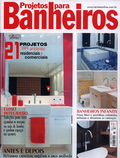 As linhas curvas, que marca o trabalho do arquiteto Aquiles Nicolas Kílaris, estão presentes em quatro páginas da edição número 6 da revista Projetos para Banheiros.