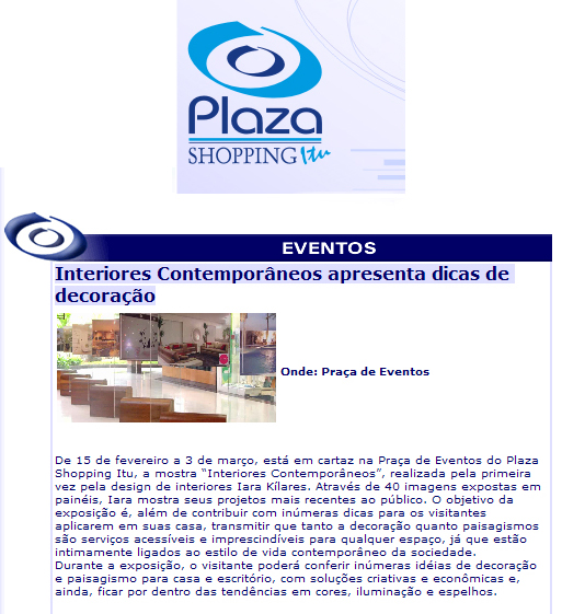 Sem-categoria Exposição no Plaza Shopping Publicado por kilaris em fevereiro 16, 2008dezembro 7, 2017 Maiores informações sobre o evento, horários e localização, clique aqui.ir para o site: www.iarakilaris.com.br Compartilhe isso: Compartilhar no Facebook(abre em nova janela) Facebook Compartilhar no X(abre em nova janela) 18+ Curtir Carregando... Relacionado
