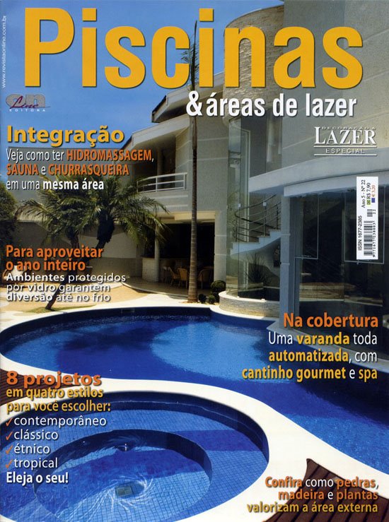 A matéria de capa da edição 22 da revista Piscinas & Áreas de Lazer, dá destaque a um projeto do arquiteto Aquiles Nícolas Kílaris. Em quatro páginas, a publicação apresenta toda a beleza e harmonia das formas orgânicas da piscina e as linhas curvas da arquitetura, marcas registradas do profissional. Vale a pena conferir os detalhes deste trabalho.