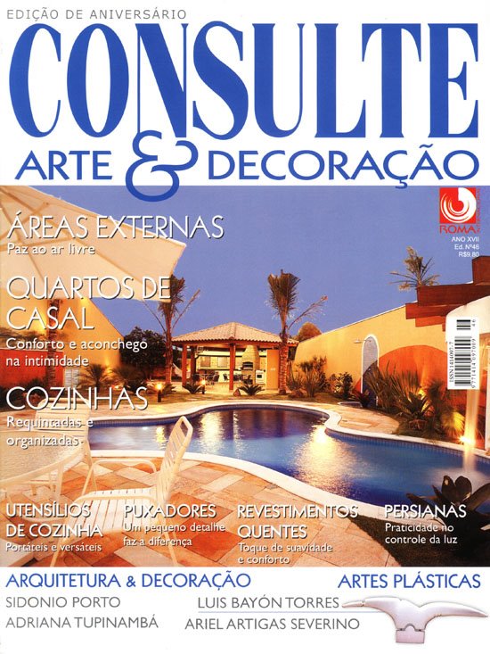 Na comemoração de mais uma edição de aniversário, a Revista Consulte Arte & Decoração, tem estampado em sua capa, um belo projeto do arquiteto Aquiles Nícolas Kílaris, que ainda participa de uma matéria muito interessante sobre piscinas e áreas de lazer.
