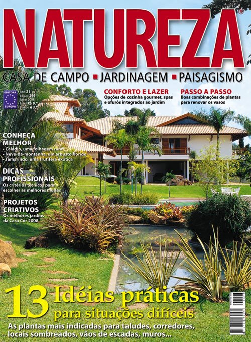 Em quatro páginas, a Revista Natureza edição 246, publicou um projeto de piscina do arquiteto Aquiles Nícolas Kílaris. Espelho d’agua e plantas tropicais, criaram a paisagem perfeita para a casa rica em varandas.ir para o site www.arquitetoaquiles.com.br