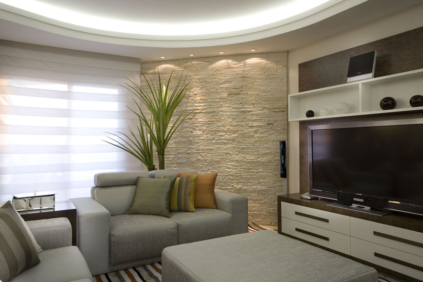 Inúmeros tipos de materiais podem ser aplicados em paredes como novas opções de revestimentos que vão desde pedras naturais, painéis em resinas, MDF e até tecidos. O arquiteto Aquiles Nicolas Kílaris conta que os painéis em MDF são um artifício decorativo que também serve de auxílio técnico, por exemplo, para a instalação de tevê de plasma.