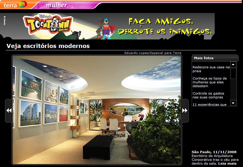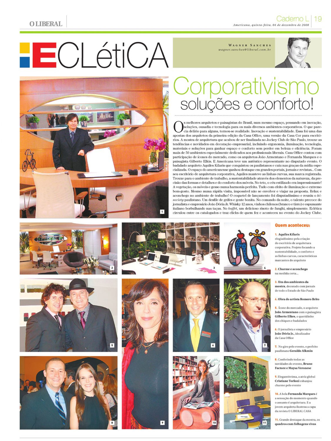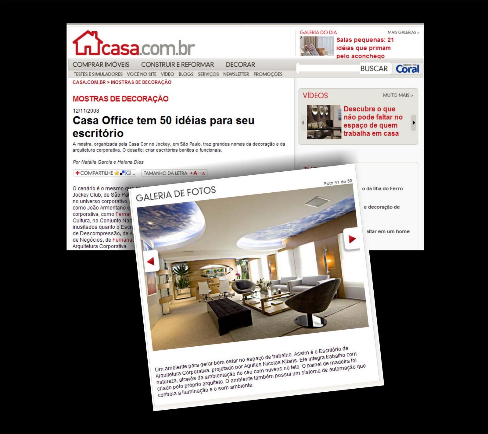 O espaço Escritório de Arquitetura Corporativa, assinado pelo arquiteto Aquiles Nícolas Kílaris, fez muito sucesso na Casa Office 2008, realizada em novembro, no Jockey Club de São Paulo. Além de ganhar destaque na publicação da mostra, o ambiente do profissional foi clicado e noticiado por boa parte da imprensa nacional. Confira.