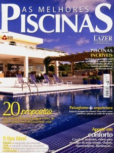 Linhas curvas realçam ainda mais o trabalho com pastilhas de porcelana em várias tonalidades de azul em um projeto de piscina, idealizado pelo arquiteto Aquiles Nícolas Kílaris na revista As Melhores Piscinas número 30.