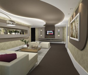 O gesso também foi utilizado na confecção de esculturas instaladas na parede e no móvel de apoio a tela de LCD. “Usamos pouquíssima madeira neste projeto. O gesso foi nosso principal aliado. Ele é mais econômico e extremamente versátil. Podemos criar com este material uma infinidade de formas e desenhos que proporcionam vida e movimento aos espaços”, disse Kílaris.