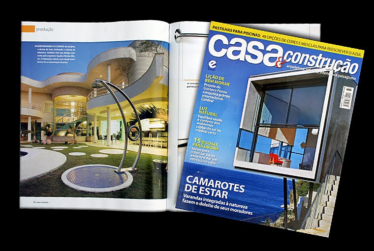 A revista Casa & Construção, número 77, mostra o design de uma ducha em inox assinada pelo arquiteto Aquiles Nícolas Kílaris, que acompanha as curvas do projeto da casa.