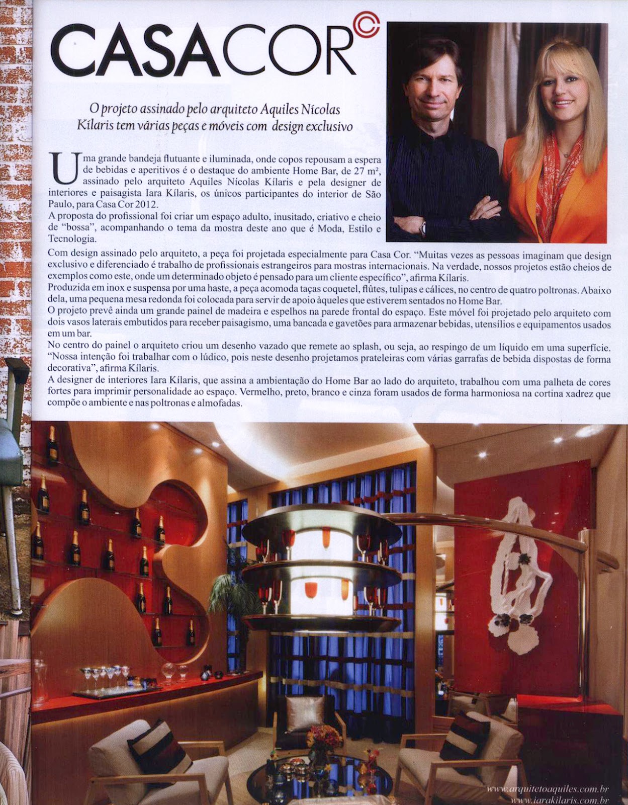 O Home Bar projetado para Casa Cor São Paulo pelo arquiteto Aquiles Nícolas Kílaris e pela designer de interiores e paisagista Iara Kílaris ganhou um informe especial na revista Todo Dia Neo, edição 10, com destaque também na Casa da Serra que foi capa da revista.