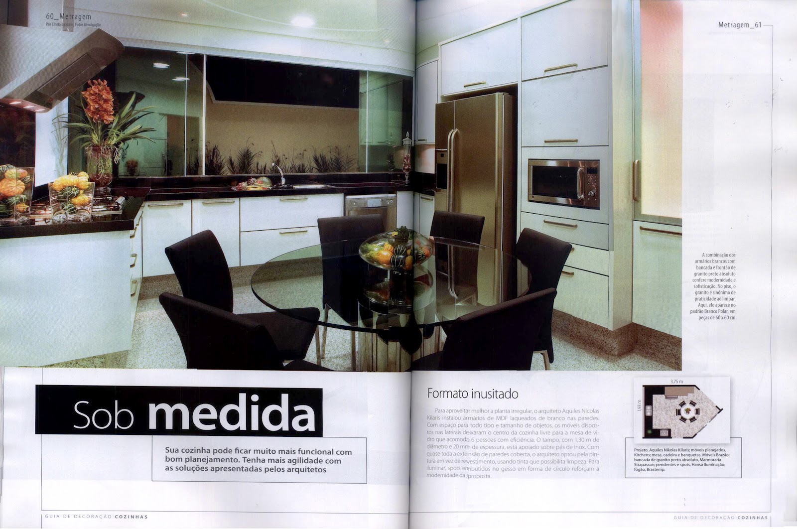 A capa da revista Guia de Decoração Cozinhas da Editora On line, número 1, traz em destaque um projeto assinado pelo arquiteto Aquiles Nicolas Kílaris e seu estilo marcante. Além disso, outros dois trabalhos do profissional foram publicados nesta edição. Eles mostram um ambiente versátil que acomoda os almoços do dia a dia e recebe amigos em momentos especiais sem perder a elegância e também a transformação de uma cozinha de formato inusitado em um ambiente muito mais funcional.
