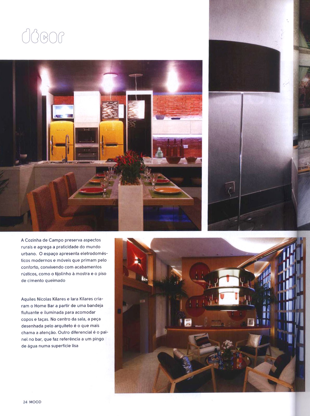 A revista Mood Life, número 26, publicou o ambiente Home Bar projetado especialmente para a mostra Casa Cor São Paulo pelo arquiteto Aquiles Nícolas Kílaris e ambientado pela designer de interiores e paisagista Iara Kílaris.