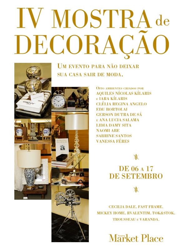A IV Mostra de Decoração Market Place, começa hoje, com a participação do arquiteto Aquiles Nicolas Kilaris e da designer de interiores Iara Kilaris, dentre outros profissionais.