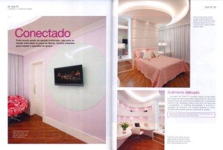 Ao projetar o quarto de 15,84 m², para uma adolescente, o arquiteto Aquiles Nícolas Kílaris escolheu o vidro serigrafado branco para esconder toda a fiação e servir de base para a TV que se encontra na parede aos pés da cama. A matéria completa está na revista Quartos, número 07.