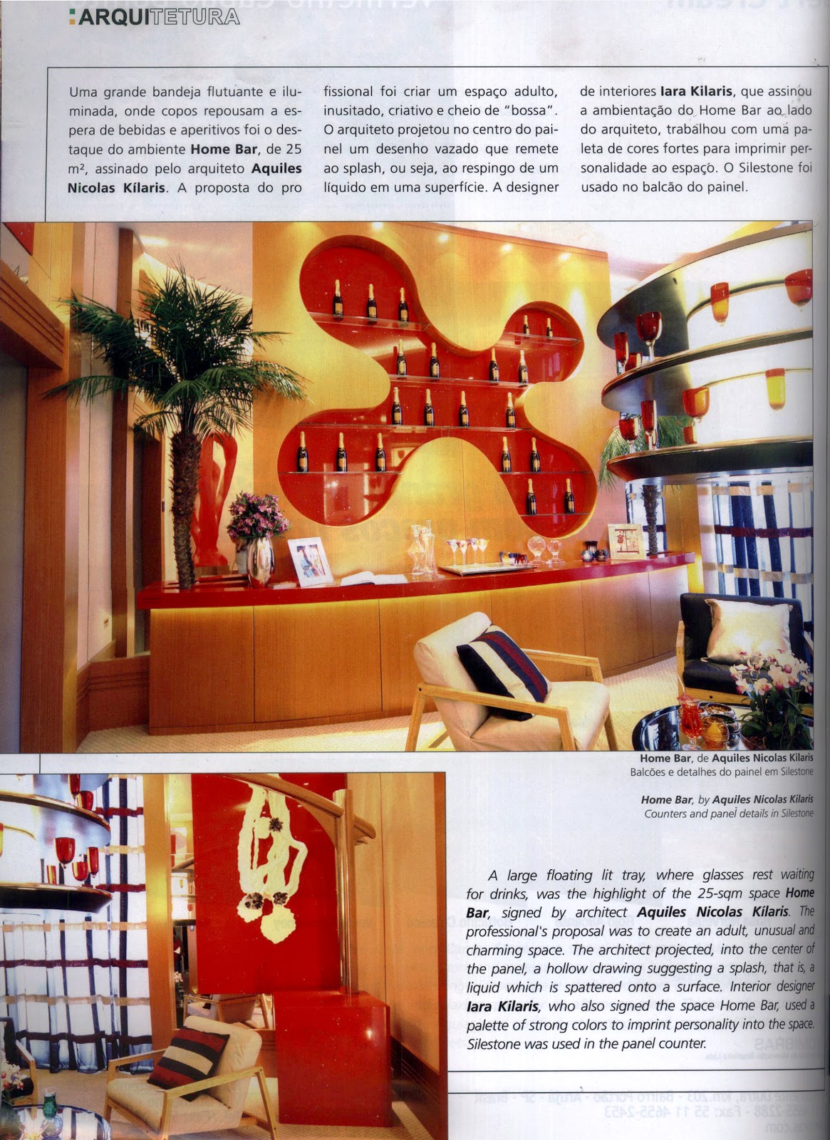 A revista Rochas de Qualidade, número 226, publicou na capa a Casa das Águas, projetada pelo arquiteto Aquiles Nicolas Kílaris. Na matéria sobre a mostra Casa Cor São Paulo 2012, o ambiente Home Bar, que teve ambientação da designer de interiores e paisagista Iara Kílaris, foi um dos destaques.