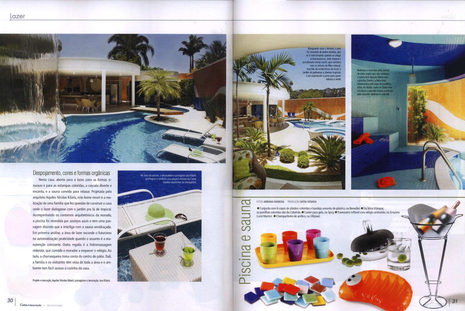 A revista Áreas Externas & Churrasqueiras, número 15, publicou dois projetos do arquiteto Aquiles Nícolas Kílaris e da designer de interiores e paisagista Iara Kílaris. OS dois possuem diferentes formas de lazer, mas propicia aos proprietários tudo o que eles desejam.
