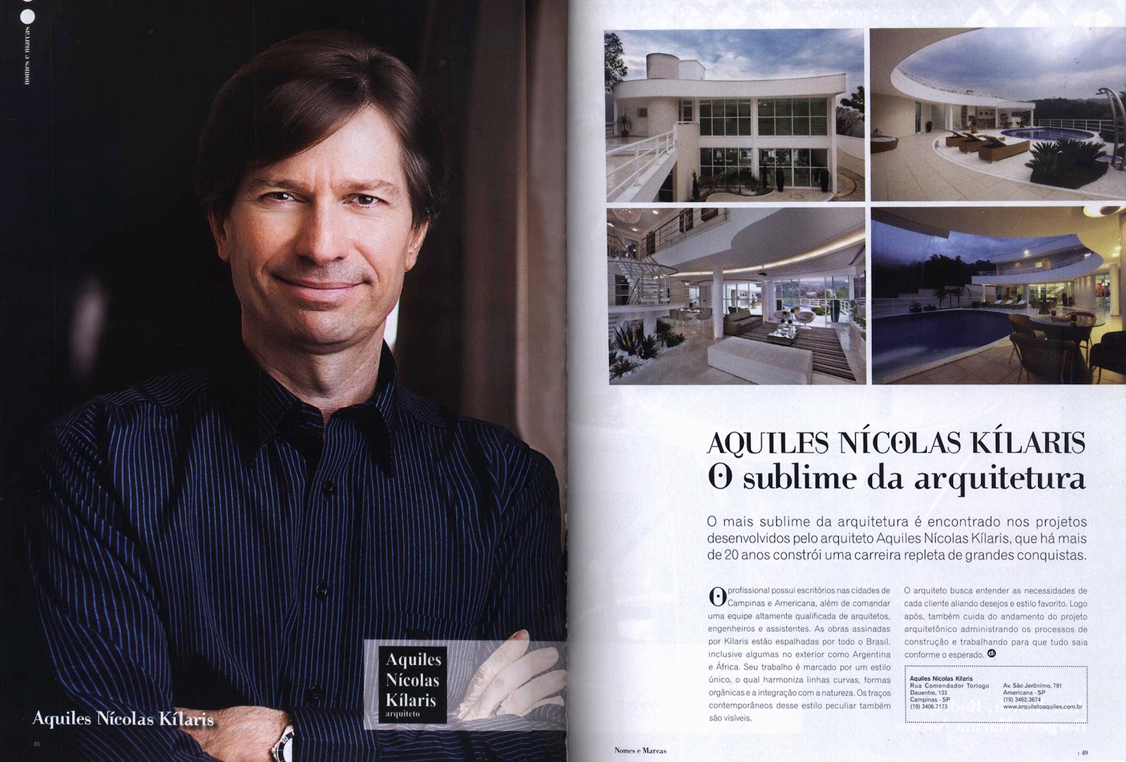 O arquiteto Aquiles Nícolas Kílaris teve destaque em uma publicação na Revista D: luxe Campinas, número 15. O arquiteto, que há mais de 20 anos constrói sua carreira repleta de grandes conquistas, mostra o que há de mais sublime na arquitetura.