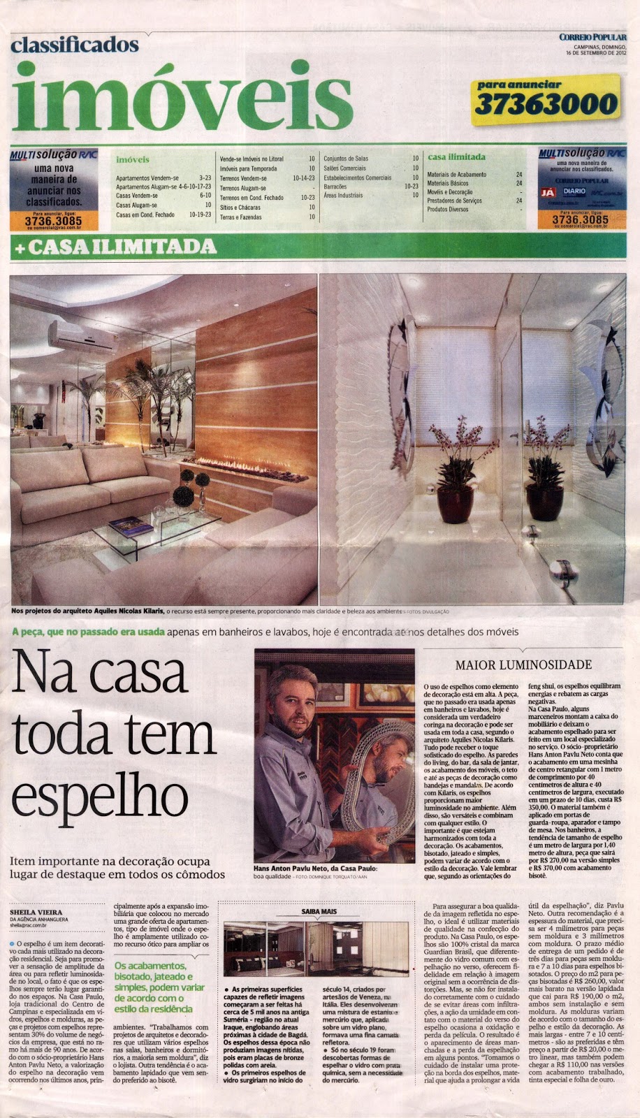 Sem-categoria Na casa toda tem espelho Publicado por kilaris em maio 14, 2013dezembro 7, 2017 O jornal Correio Popular, no caderno Imóveis, publicou alguns projetos do arquiteto Aquiles Nícolas Kílaris sobre o uso do espelho, item importante na decoração que pode ocupar destaque nos ambientes. ir para o site www.arquitetoaquiles.com.br Compartilhe isso: Compartilhar no Facebook(abre em nova janela) Facebook Compartilhar no X(abre em nova janela) 18+ Curtir Carregando... Relacionado