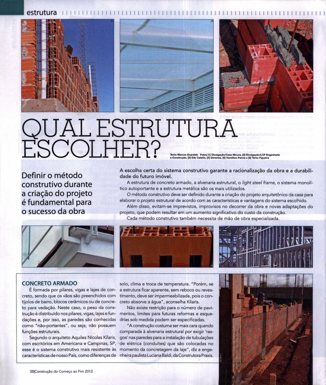 O arquiteto Aquiles Nícolas Kílaris dá dicas de como fazer a escolha certa da estrutura utilizada durante a obra, prevendo a durabilidade do imóvel. A matéria foi publicada na revista Construção do começo ao fim de número 2.