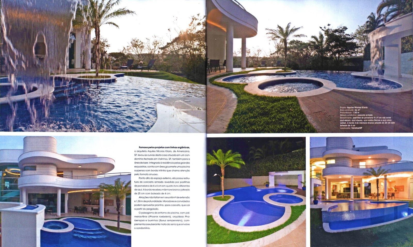 O projeto de área de lazer da casa Refúgio da Mata, do arquiteto Aquiles Nícolas Kílaris, foi publicado na revista Piscinas & Churrasqueiras, número 68. A piscina, com 46 m², é o ponto alto do espaço e possui formato sinuoso, marca do arquiteto.