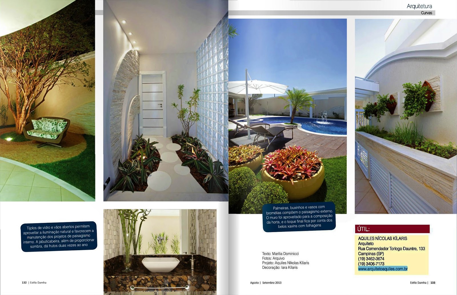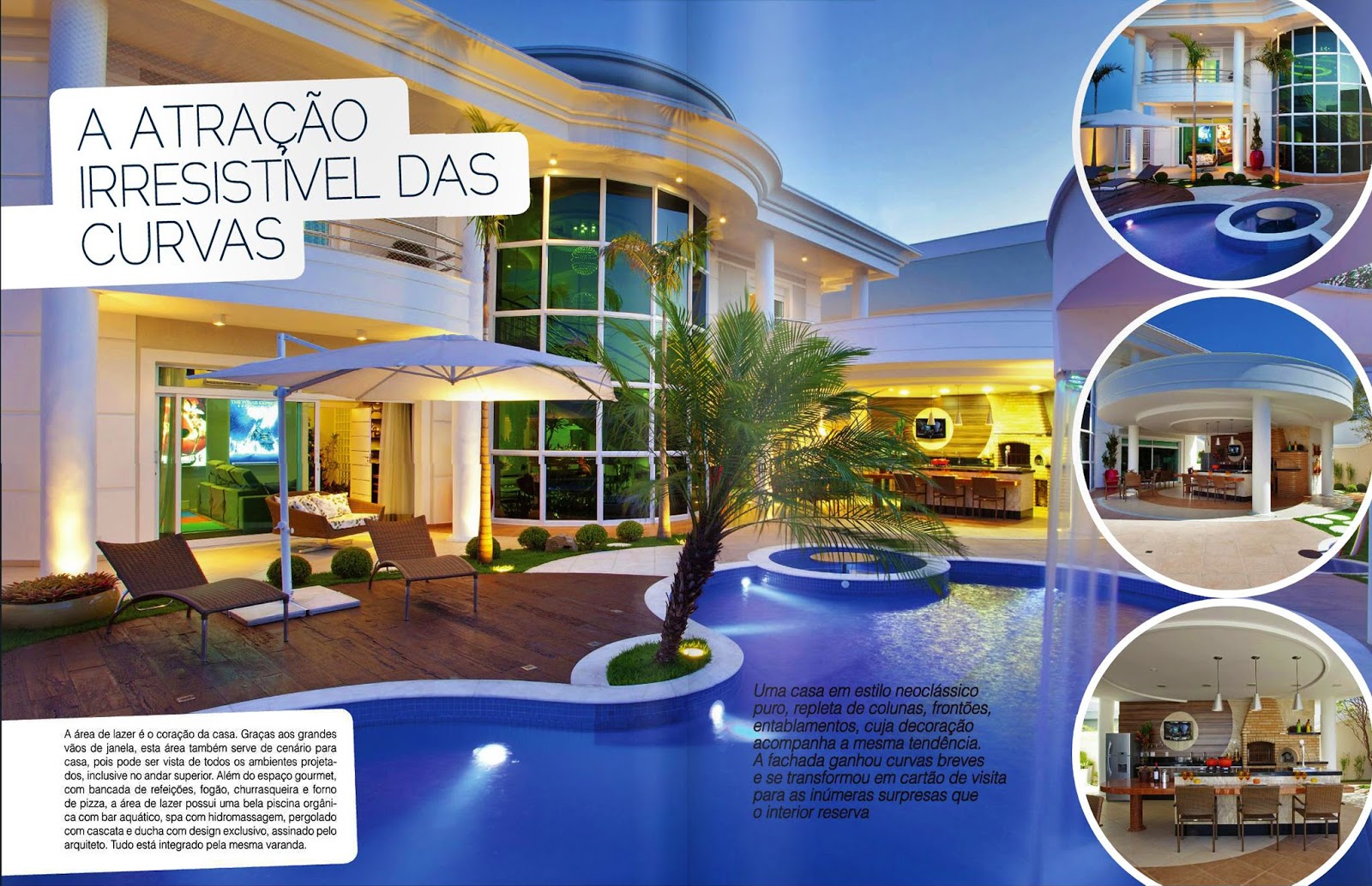 A revista Damha, número 6, publicou o projeto Curvas no Neoclássico, do arquiteto Aquiles Nícolas Kílaris. Sua área de lazer, que se tornou o coração da casa, possui espaço gourmet, uma piscina com spa, hidromassagem e bar aquático.