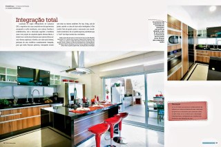 A casa que acompanha o estilo neoclássico com colunas e frontões, localizada na região metropolitana de Campinas, projetada pelo arquiteto Aquiles Nícolas Kílaris, possui uma cozinha que segue as tendências atuais. Ela foi projetada para que o “chef” não fique isolado enquanto prepara as refeições, além de estar interligada com o living, sala de jantar e a área gourmet. A matéria foi publicada na revista Casa & Decoração de número 68.