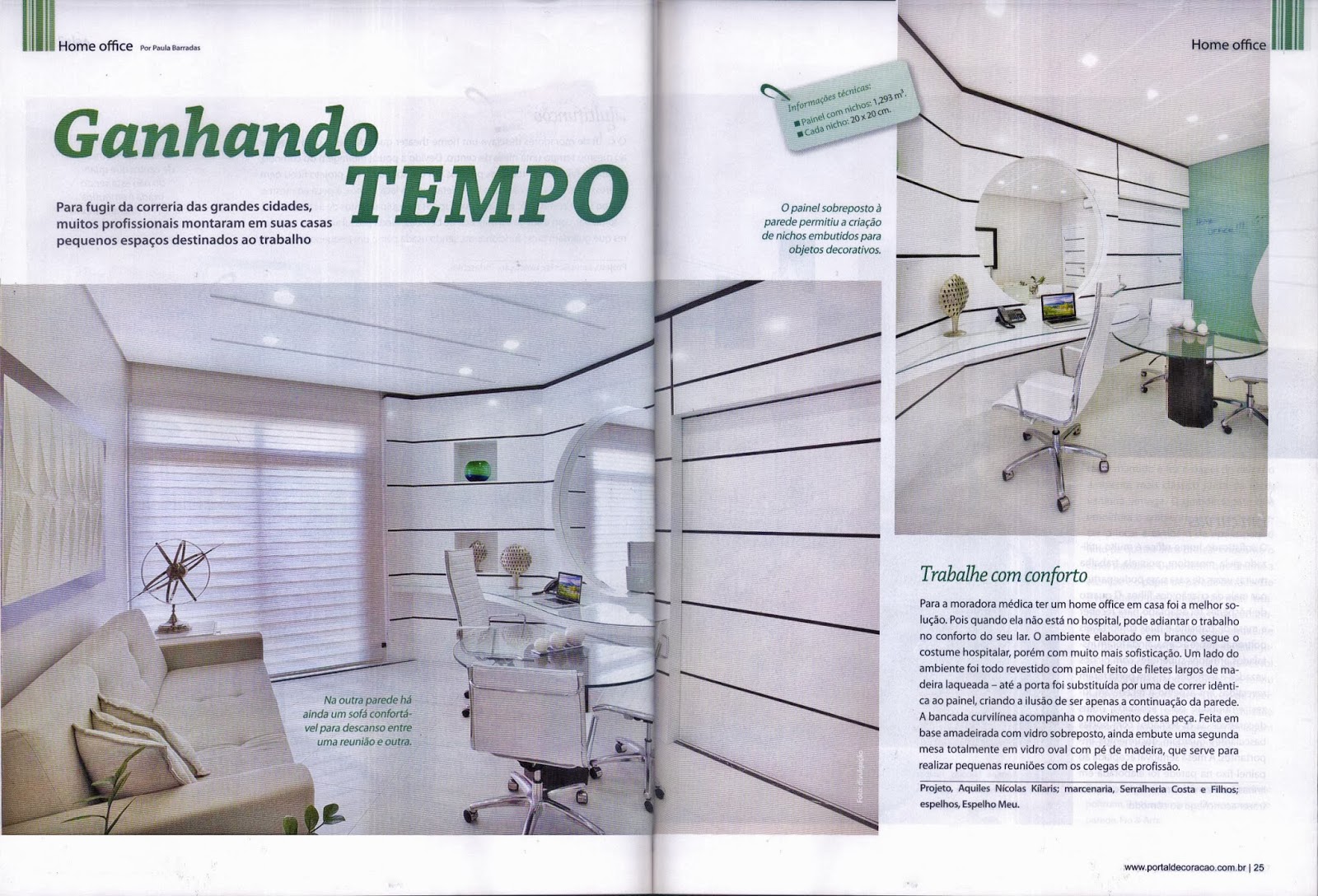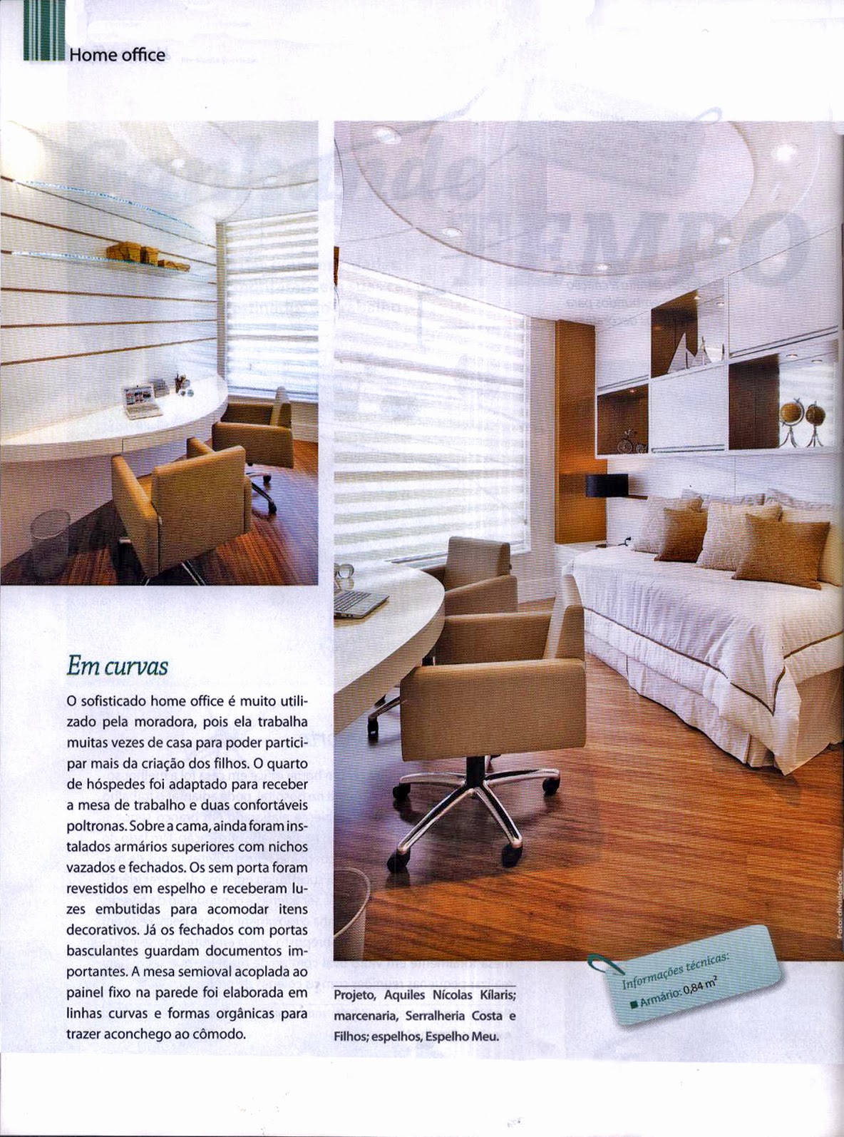 A revista Armários & Closets, número 37, publicou dois projetos de home office do arquiteto Aquiles Nícolas Kílaris. Os dois espaços foram projetados, para que no conforto de seu lar, os moradores tenham locais destinados ao trabalho.
