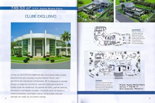 As linhas curvas e formas orgânicas foram valorizadas neste projeto de 749,53 m², do arquiteto Aquiles Nícolas Kílaris. O destaque desta residência é o amplo terraço no pavimento superior, que possui vista para a piscina e a área verde da casa. A publicação está no Guia de Projetos para Construir Anuário Especial 2013.