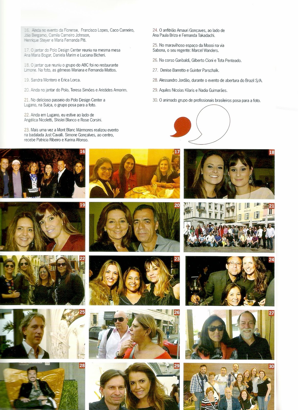 A Revista Casa & Mercado, número 149, publicou sobre a semana do design de Milão e seus visitantes, entre eles, no click de Sandra Leise, o arquiteto Aquiles Nícolas Kílaris e a empresária Nadia Guimarães.