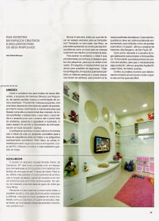 O arquiteto Aquiles Nícolas Kílaris teve como proposta criar um espaço que concentrasse as brincadeiras preferidas dos filhos do casal de proprietários. O espaço ganhou círculos coloridos nas paredes, painel de recados e um móvel funcional para acomodar os brinquedos. Tudo pode ser transformado no futuro como quarto de estudos. A revista Construir, número 183, publicou o projeto.
