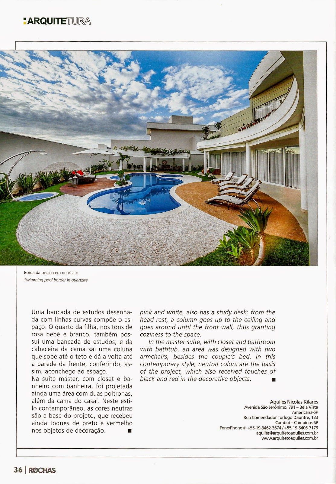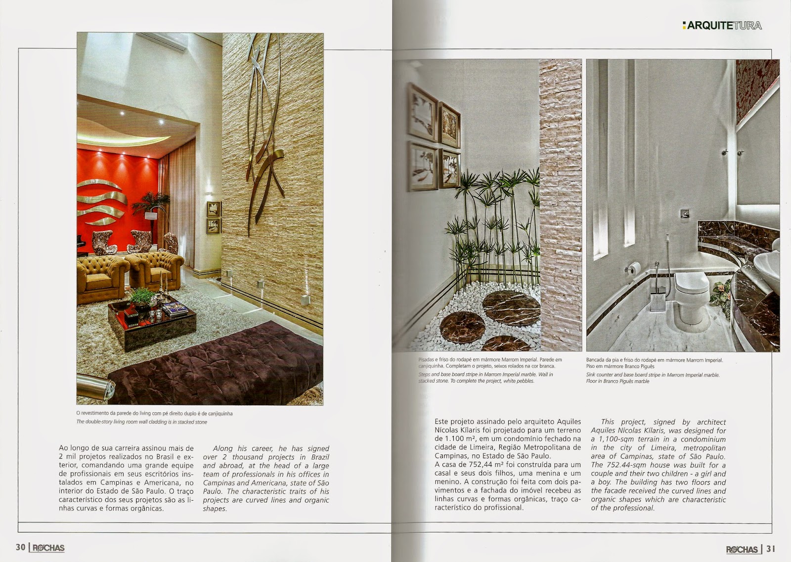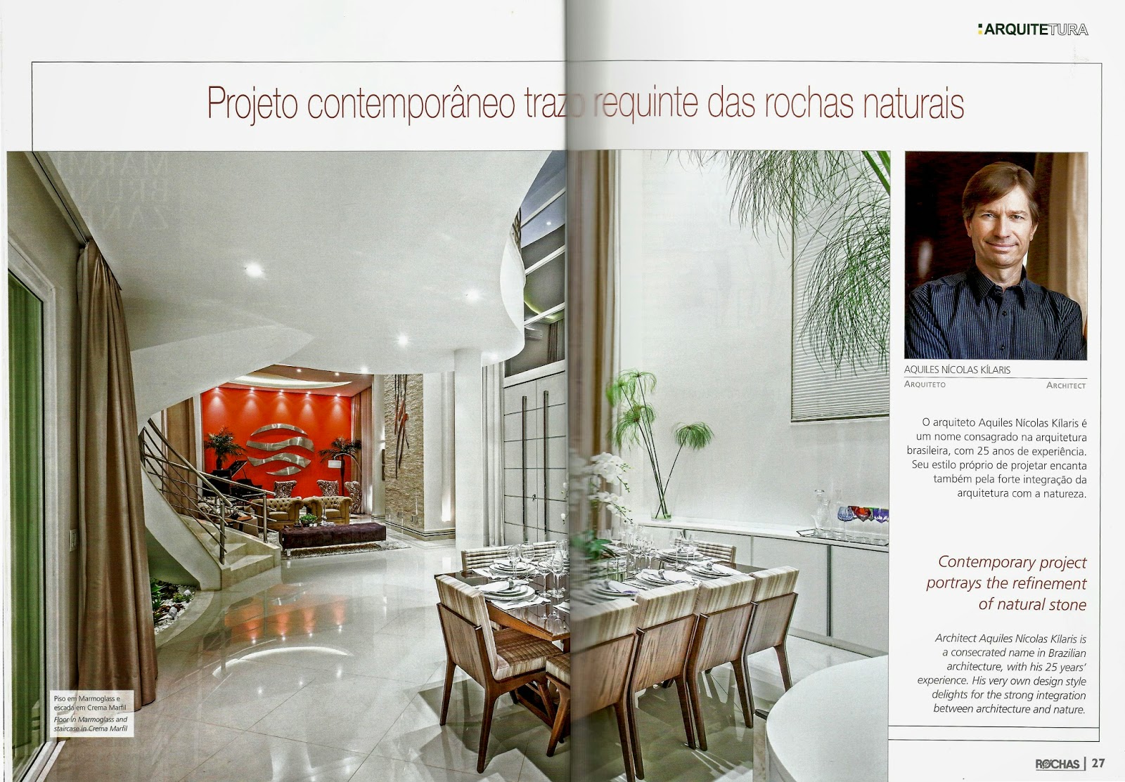 A revista Rochas de Qualidade, número 242, publicou na capa a Casa Limeira, projetada pelo arquiteto Aquiles Nícolas Kílaris. A matéria especifica todos os mármores utilizados nessa residência de 752,44 m², construída para um casal e seus dois filhos.