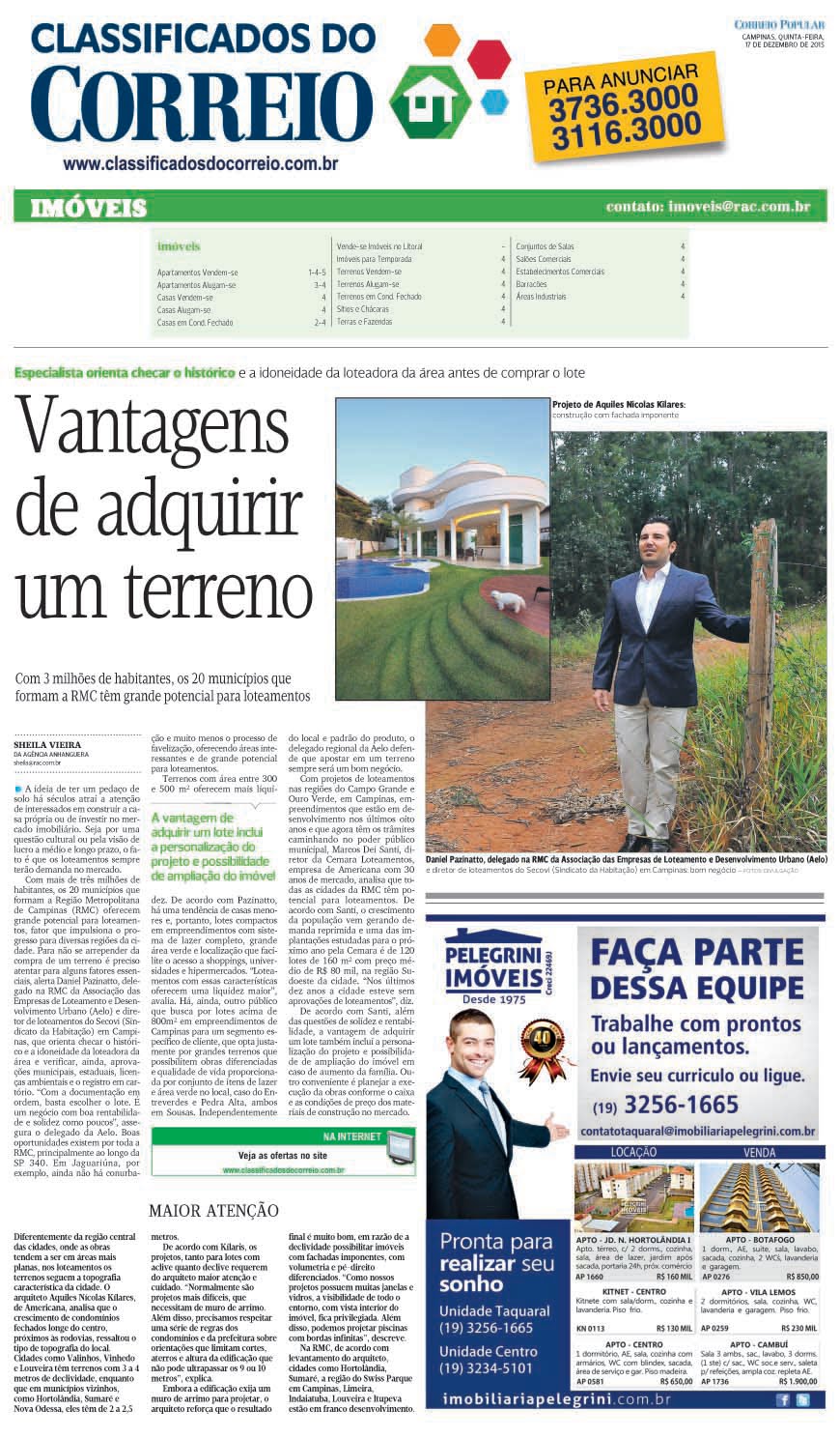 O jornal Correio Popular, caderno de imóveis, publicou o projeto do arquiteto Aquiles Nícolas Kílaris. Além disso, dá recomendações de como encontrar o terreno ideal, valorizando todos os fatores, como localização, tamanho e o tipo de terreno.