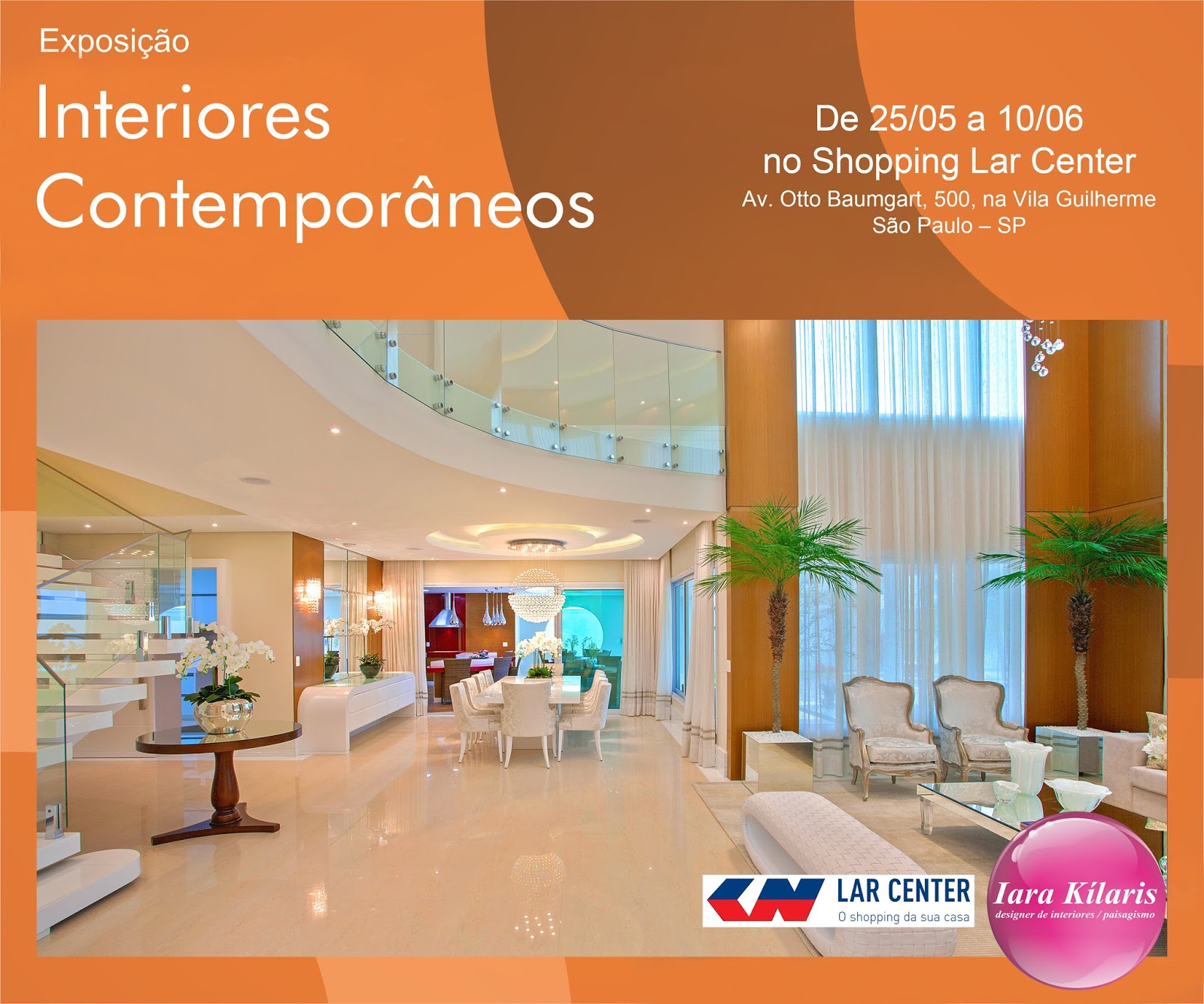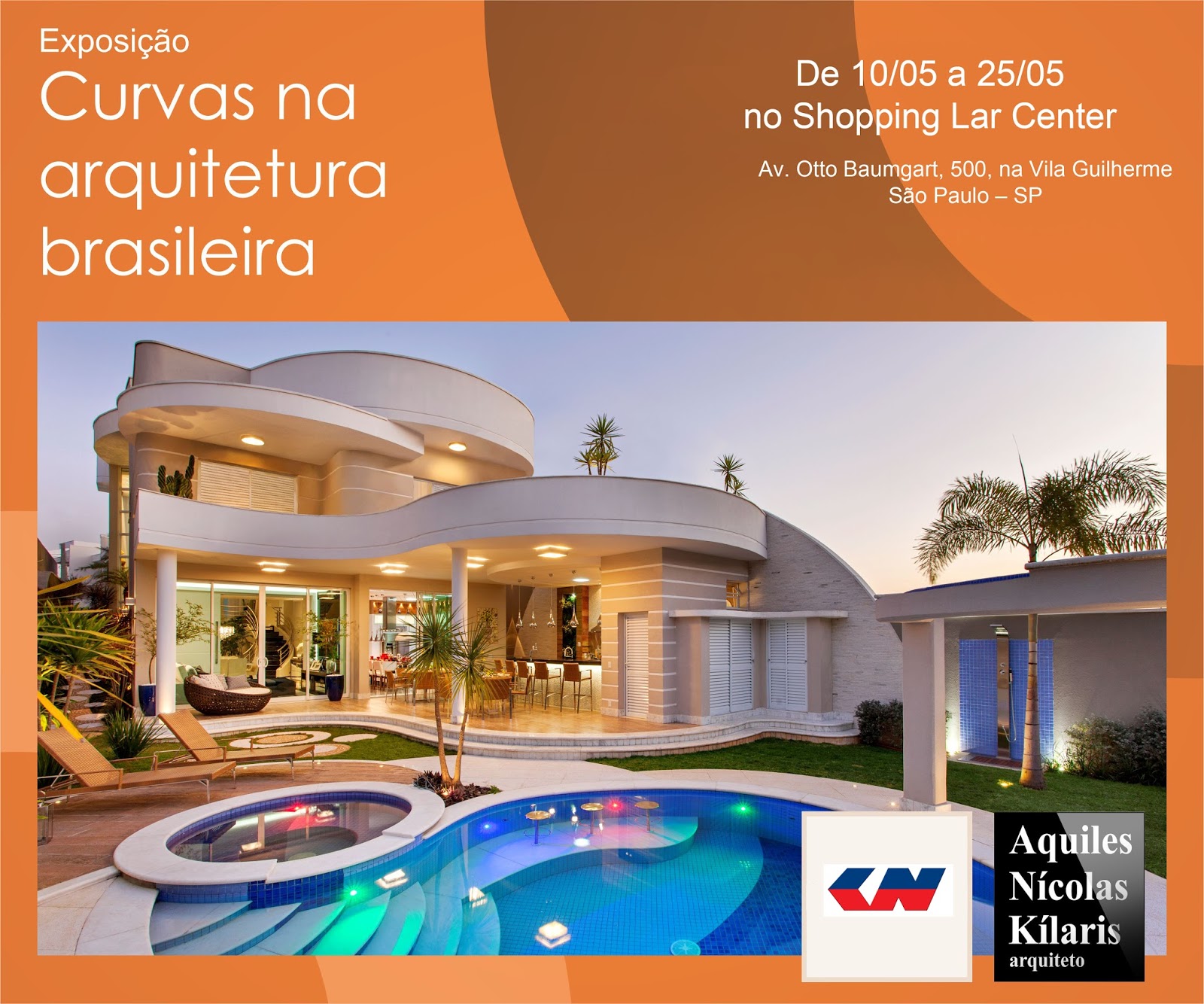 A Exposição Curvas na Arquitetura Brasileira, do arquiteto Aquiles Nícolas Kílaris, está de o dia 10 de maio a 25 de maio, no shopping Lar Center, em São Paulo/SP. Logo em seguida, a partir do dia 26 de maio, os visitantes poderão conferir a exposição “Interiores Contemporâneos”, com fotos dos principais trabalhos da Designer de Interiores Iara Kílaris. Convidamos a todos para visitar!