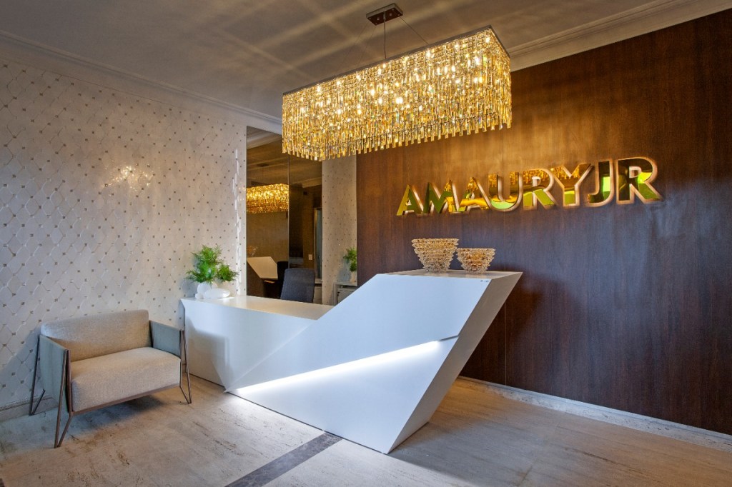 As obras foram realizadas dentro do quadro de arquitetura e decoração Estilo Kílaris – apresentado pelo Programa Amaury Jr, da Rede TV. Ao longo de 24 episódios, o público acompanhou toda a evolução do projeto e a entrega dos sets de gravação. A porta de entrada da Casa Studio é a imponente recepção, com destaque na parede da marca Amaury Jr, iluminada em dourado. Mármore, cristais swarovski e um grande lustre de bronze complementam o espaço.
