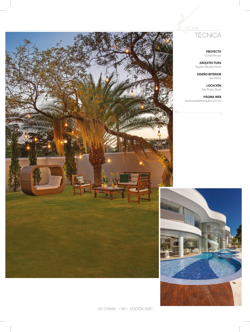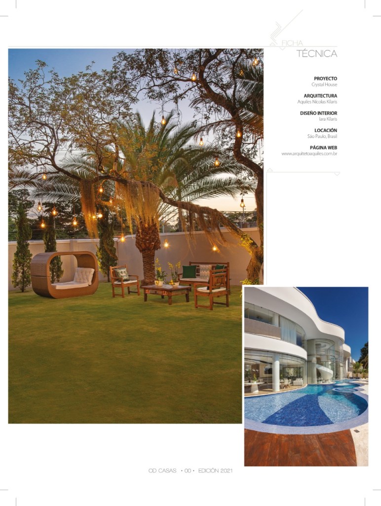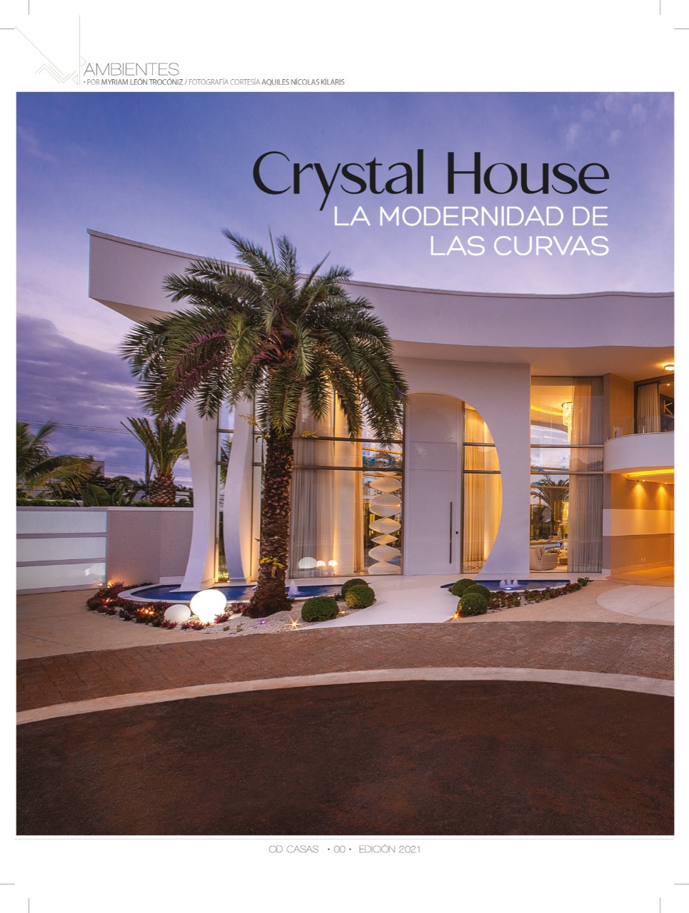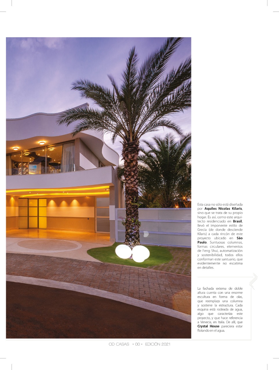Projeto da Casa Cristal, assinado pelo arquiteto Aquiles Nícolas Kílaris, é destaque internacional da revista venezuelana OD Casas. Kílaris concebeu esse projeto a partir da arquitetura das curvas e formas orgânicas para morar com a família.