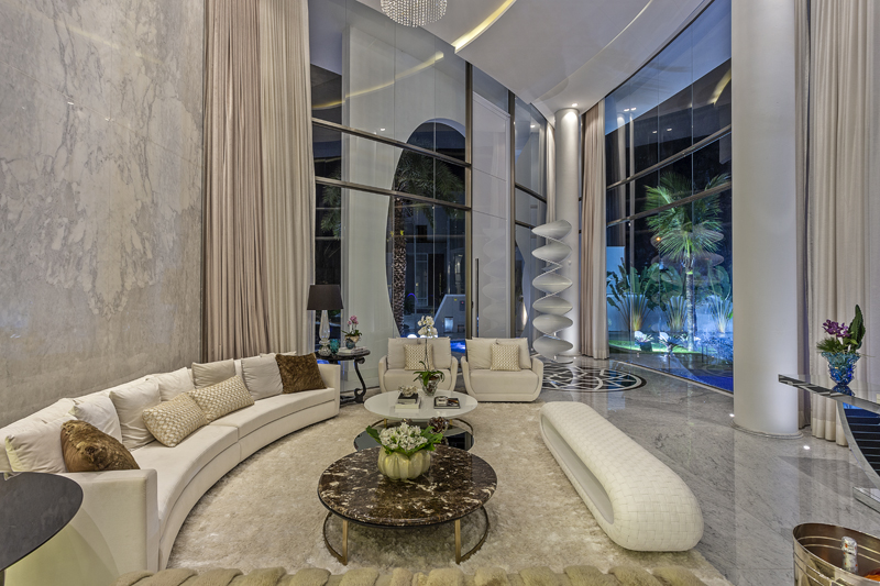 No living da Casa de Cristal – projeto do arquiteto Aquiles Nícolas Kílaris para ele e sua família morarem na região de Campinas – a integração é total. As paredes de vidro possibilitam a interação dos ambientes externos com toda a área de lazer.