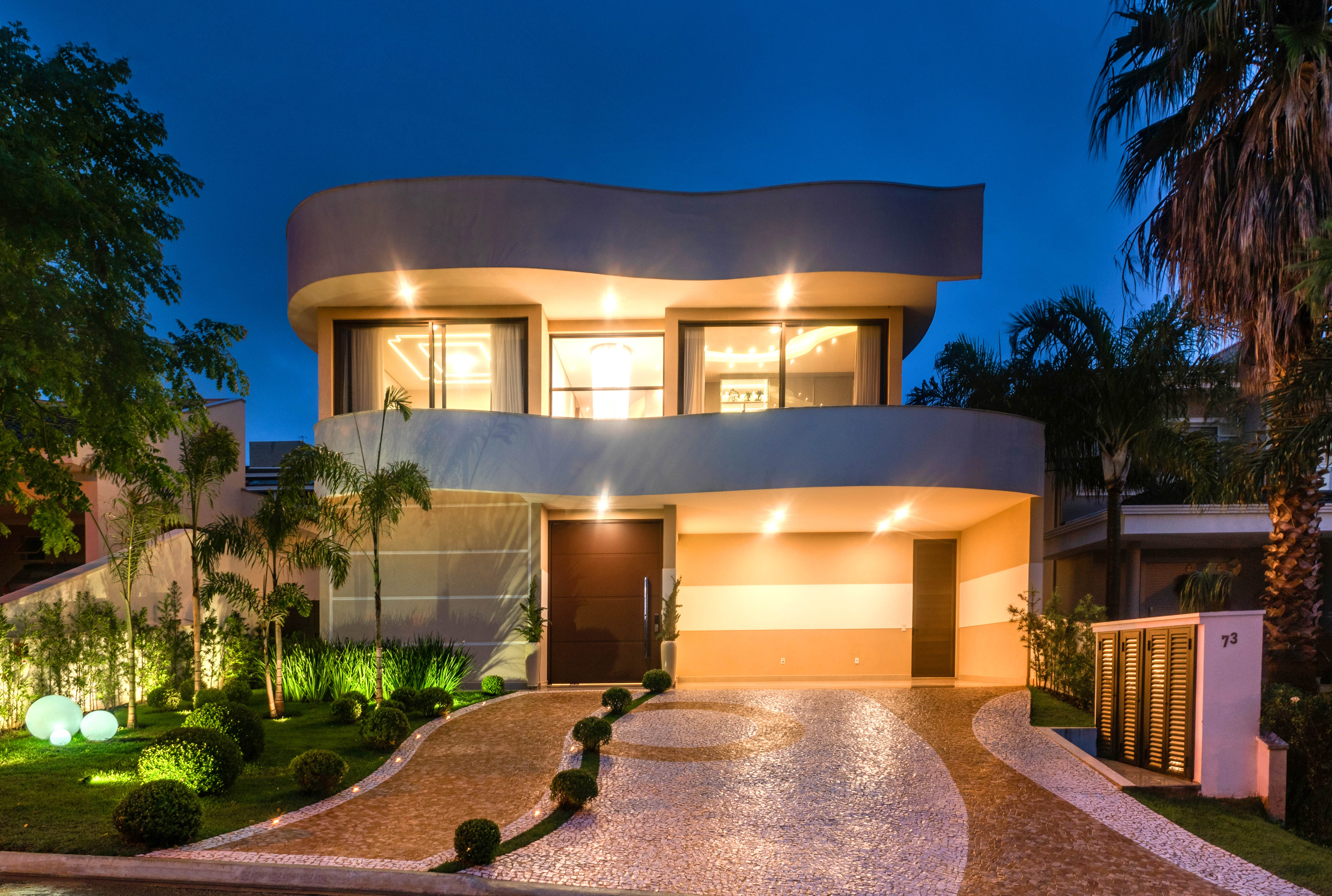 As formas diferenciadas da arquitetura de Kílaris conferem suntuosidade ao projeto, seja ele construído em terrenos de grandes dimensões ou em terrenos com tamanho padrão, como é o caso desta residência. As curvas e formas orgânicas usadas por ele imprimem “movimento” a fachada e um toque especial em seu interior