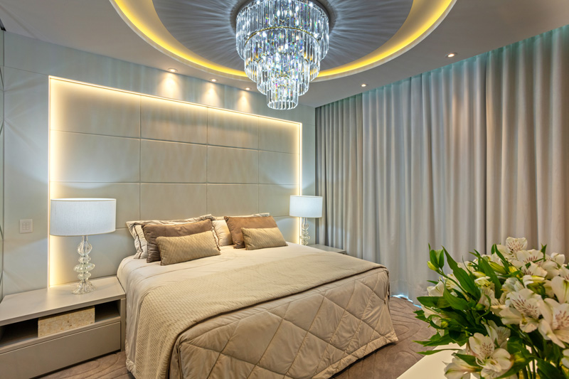 A Casa Bela Vista, assinada pelo arquiteto Aquiles Nícolas Kílaris, conta com quatro suítes, uma para o casal e as outras três para os filhos, dois rapazes e uma moça. A suíte máster é toda em tons pastéis, o closet espelhado e banho, em branco e preto, foram projetados na saída do espaço, evitando que a pessoa se arrume e volta para a área de dormir e acorde quem ainda está deitado