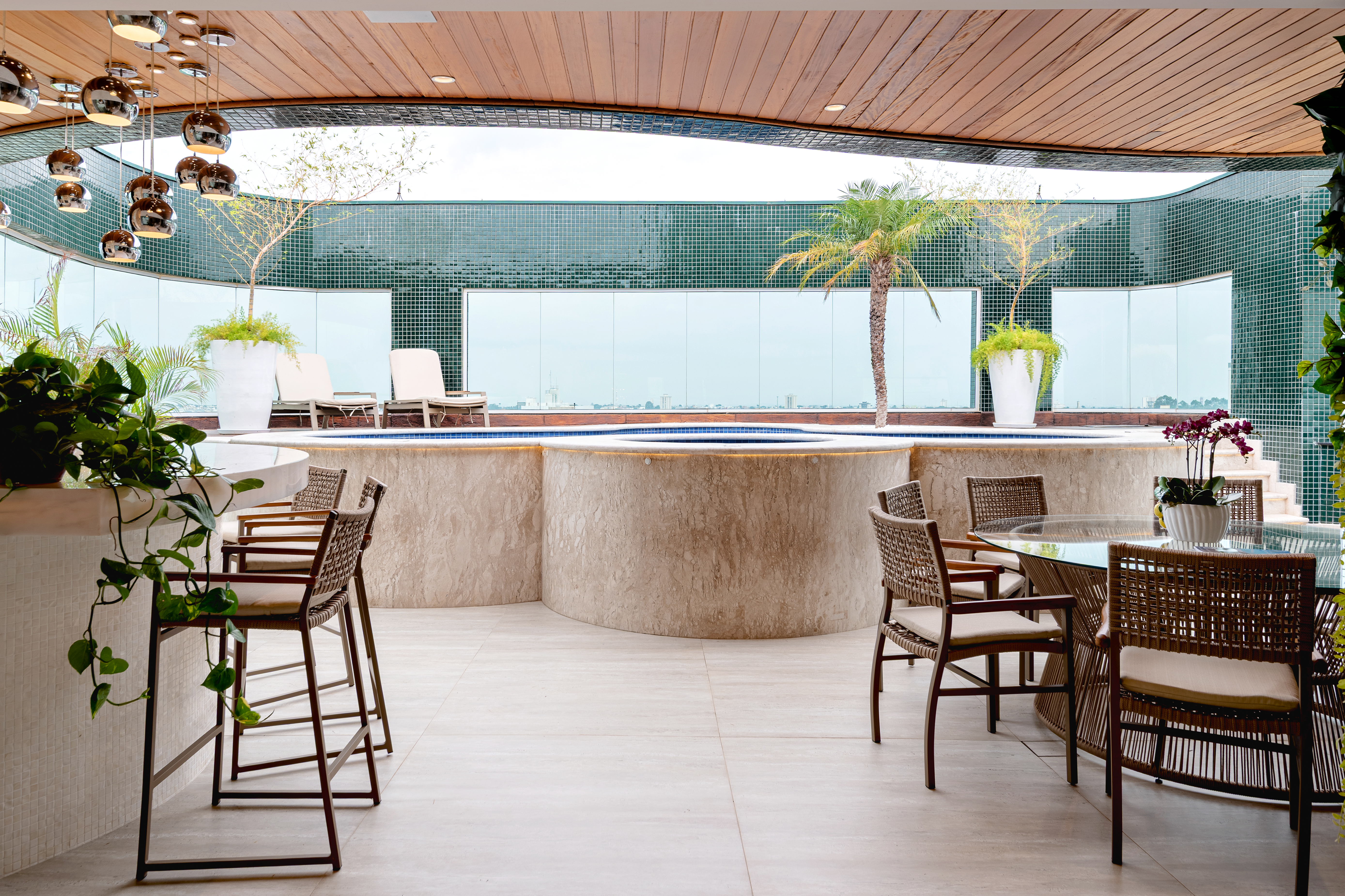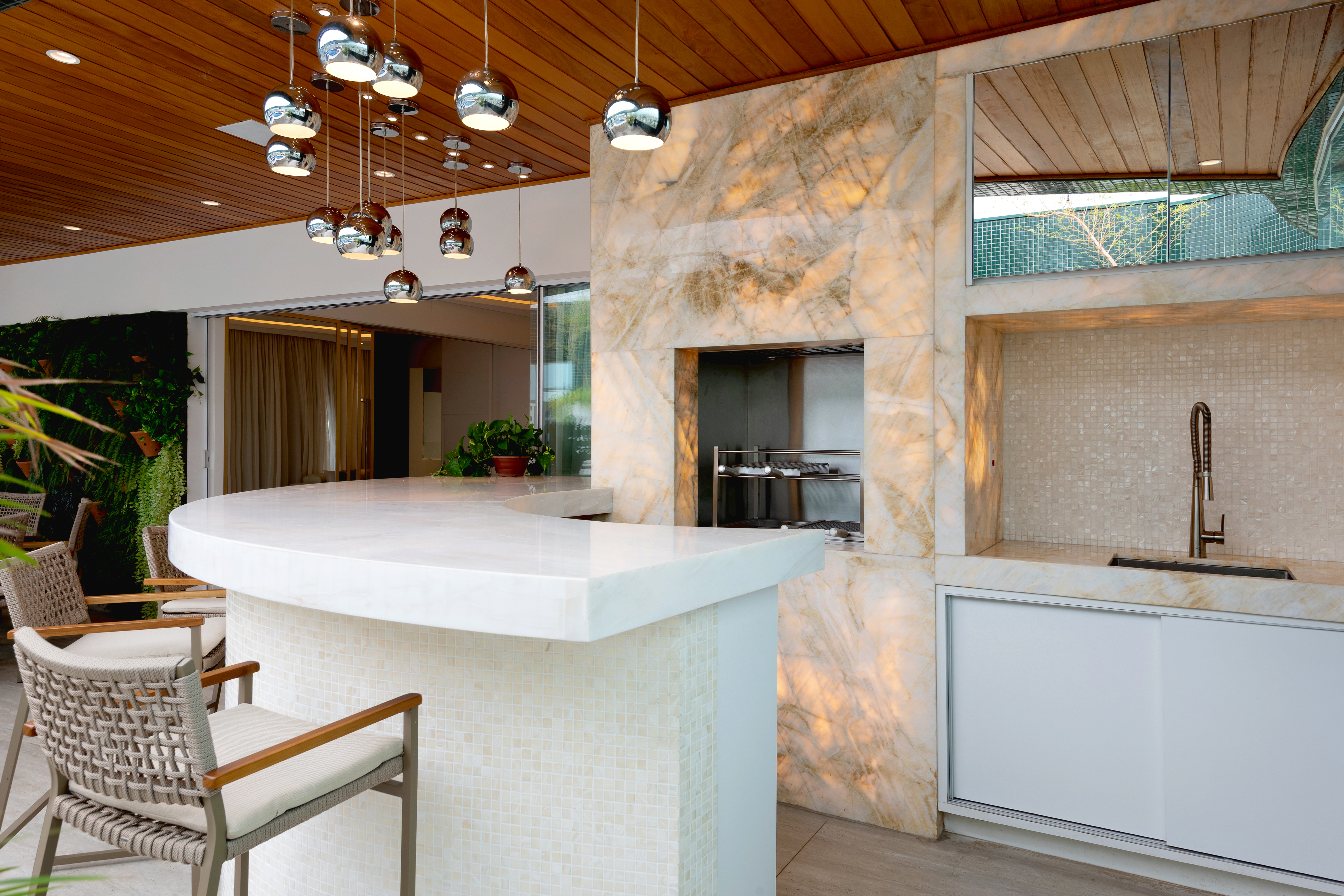 Amplitude, integração de ambientes, pedras naturais, cristais e uma piscina em formato orgânico, com uma vista de tirar o fôlego. Todos esses elementos reunidos conferem ao Apartamento Waves, a sofisticação e elegância de uma mansão suspensa, projetada para oferecer o máximo em conforto e privacidade para uma família da cidade de Americana, no interior de São Paulo. O projeto foi assinado pela design Iara Kílaris.