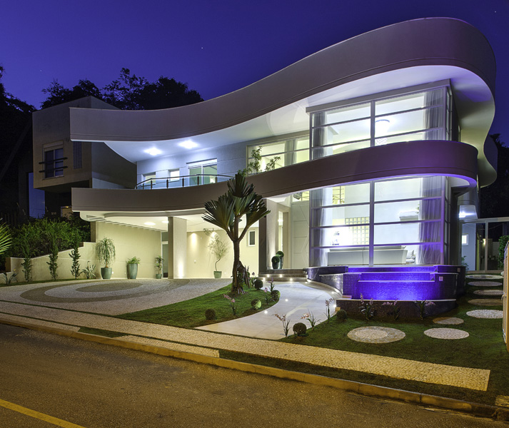 Nada como um belíssimo projeto luminotécnico para dar vida a uma casa. A luz focada no ponto certo, na intensidade certa e na hora certa, realça os detalhes e a beleza do projeto, o estilo imponente da arquitetura e o requinte da decoração.