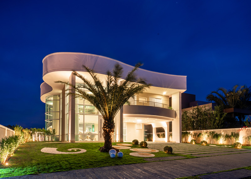 A Casa De La Torre, assinada pelo arquiteto Aquiles Nícolas Kílaris, foi concebida com fachadas sinuosas e linhas curvas que abraçam toda a estrutura da residência. O pé direito altíssimo confere imponência ao imóvel localizado em Porto Feliz, no interior de São Paulo.