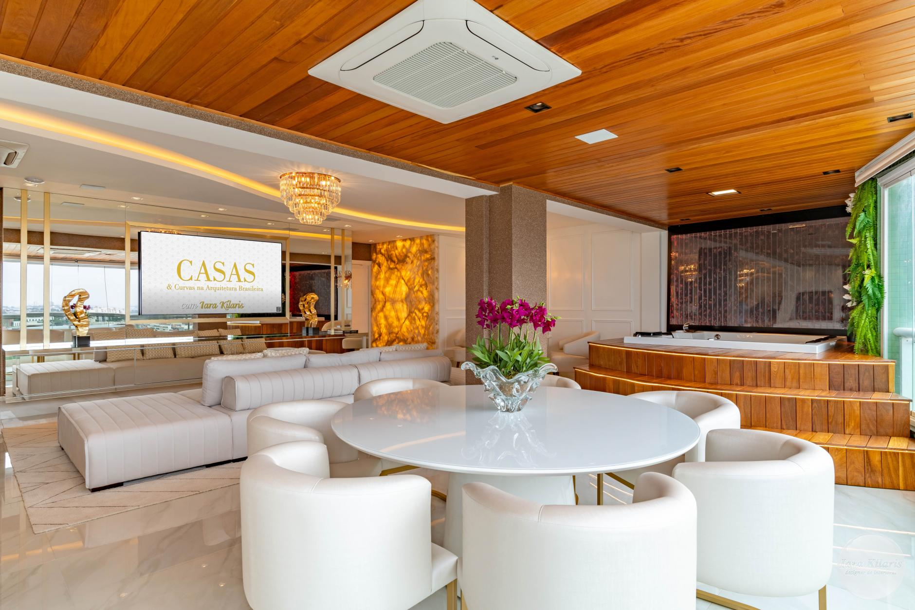 As curvas que remetem as ondas verdes do mar, presentes na fachada do Apartamento Waves, são as inspirações para a decoração de interiores da designer Iara Kílaris. O projeto arquitetônico do edifício, localizado em Americana, interior de São Paulo, foi assinado pelo arquiteto Aquiles Nícolas Kílaris. Ele imprimiu na obra seu estilo característico, que valoriza as linhas sinuosas, as formas orgânicas e a integração com a natureza.