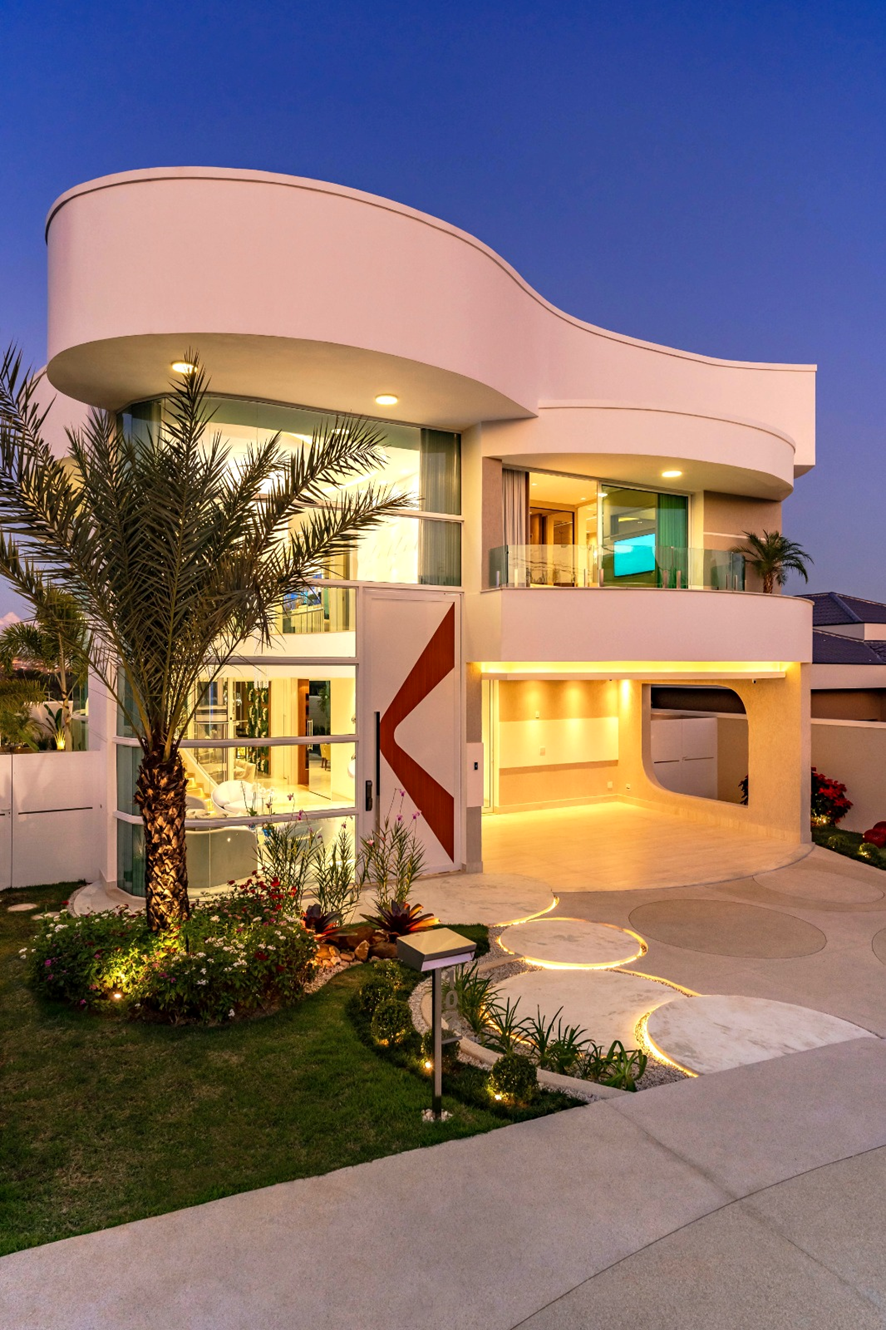 A fachada da Casa Preciosa, assinada pelo arquiteto Aquiles Nícolas Kílaris, foi concebida a partir da arquitetura das curvas, estilo inconfundível do arquiteto. As testeiras que contorno o imóvel são sinuosas e se entrelaçam, concebendo movimento a fachada.