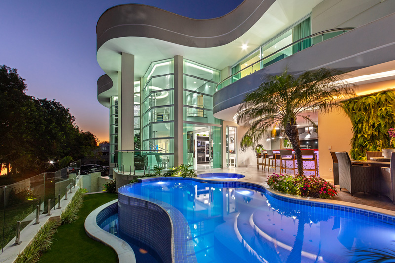 O lazer da Casa do Lago é completo. Ele possui churrasqueira, bancada sinuosa, piscina com borda infinita, spa, recantos de contemplação, vestiário e um lindíssimo jardim florido, tudo integrado com a natureza ao redor. O muro de vidro, permite a interação dos ambientes externos do imóvel, com a mata e o lago do condomínio.