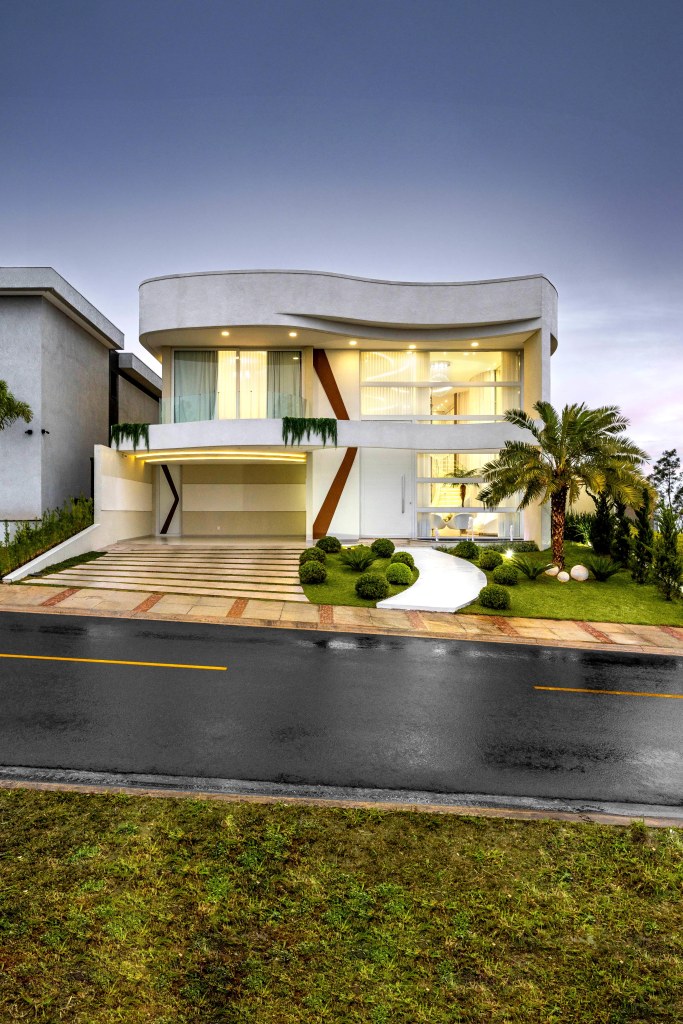 A residência, assinada pelo arquiteto Aquiles Nícolas Kílaris, está localizada no Paraná, em um terreno padrão de condomínio, com pouco mais de 300 m². O segredo de sua imponência está na arquitetura das curvas proposta no projeto.